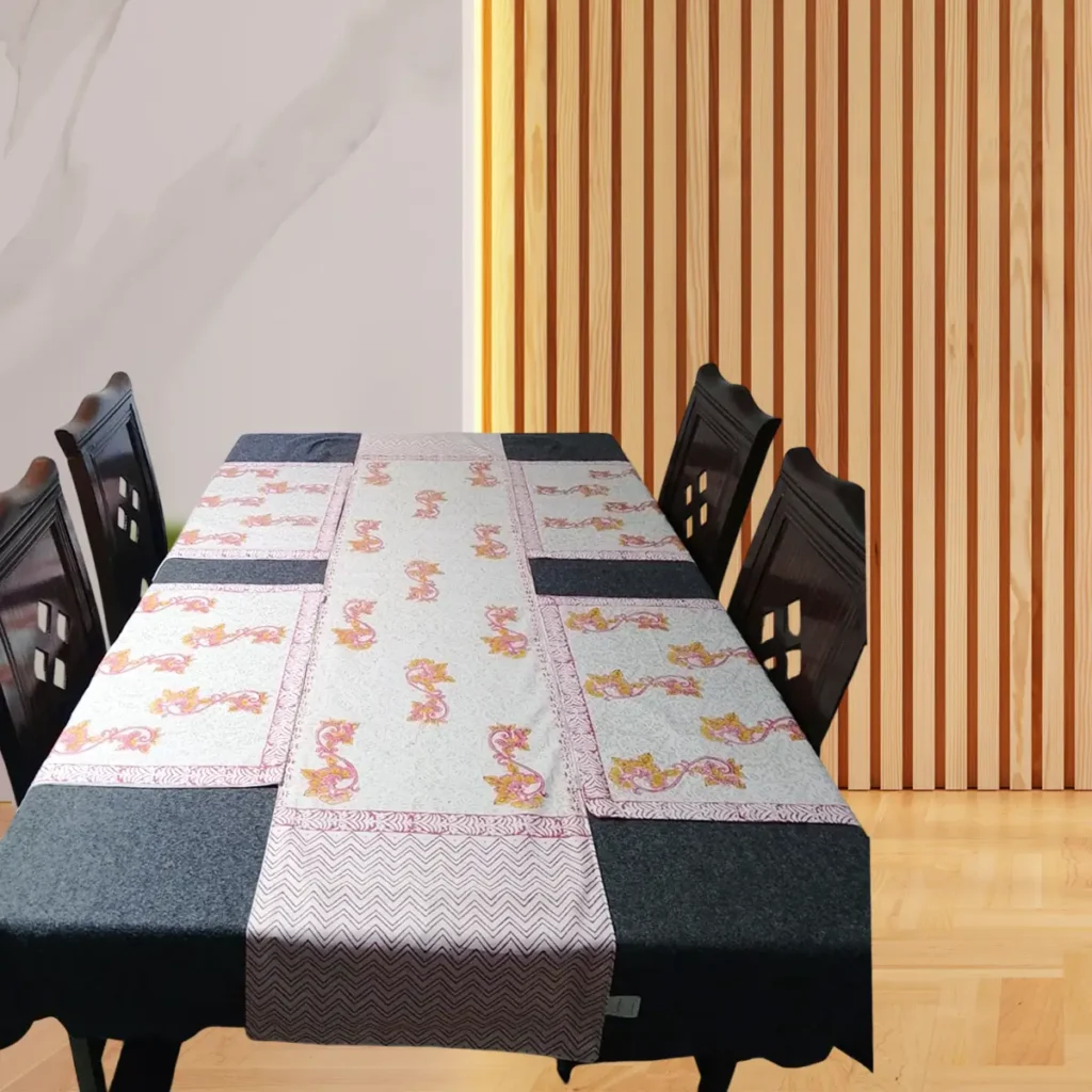 Handmade Block Print Table Runner & Chair Cover Set